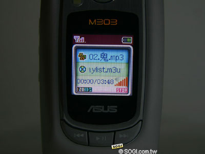 為貝殼機身的 ASUS M303,為華碩旗下首款 MP3 手機,除祭出強大廣告宣傳外,在手機功能上也頗費功夫。為了彌補折疊機須開蓋才能操作各項功能的先天缺憾,M303 外蓋上設有音樂快捷鍵,可直接進入播放介面,並可執行 Play / STOP / NEXT 等選項。Z2 除將 MP3 功能設為左右兩側快捷鍵外,機身側面也有 MP3 鍵可快速啟動音樂程式。